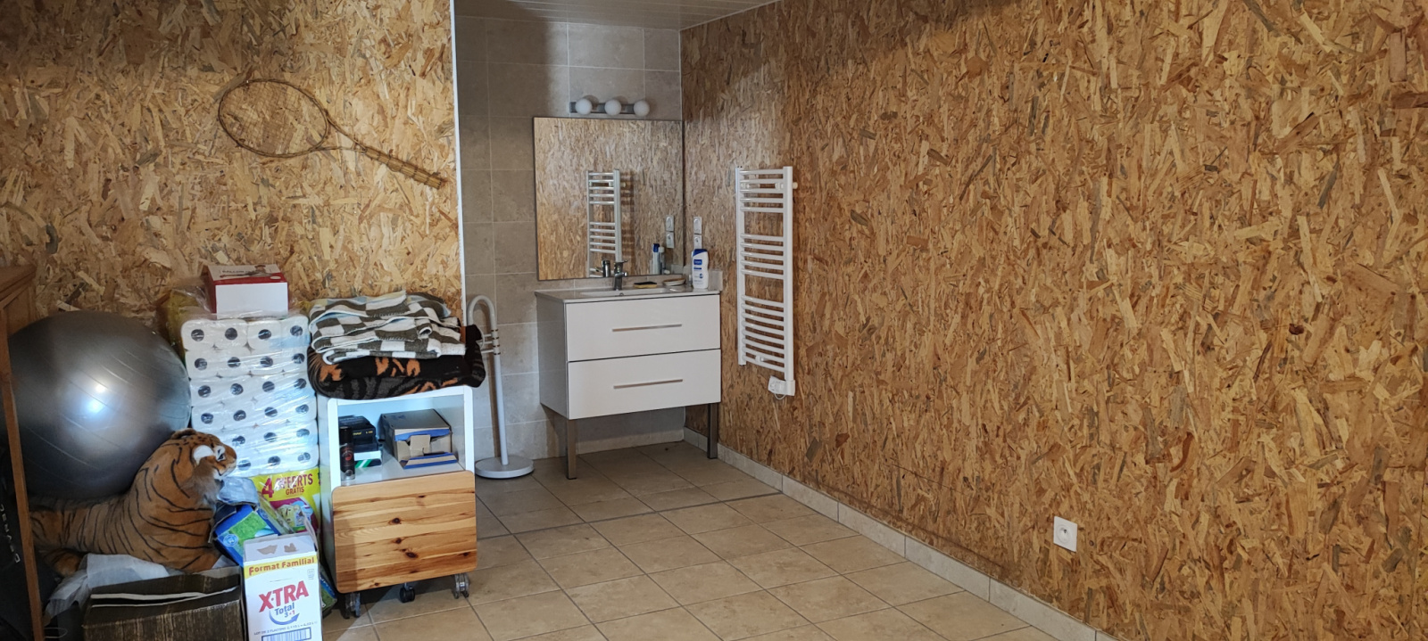 Le sous-sol a été aménagé avec une grande pièce, une chambre parentale et une buanderie avec toilette.